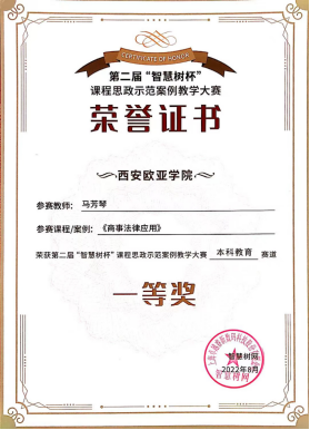2025年10月11日,由西部高校课程思政建设联盟组织的第二届课程思政案例大赛经过长达四个多月的激烈竞争和专家评选,终于揭晓评选结果,由我院马芳琴老师撰写的《商事法律应用》课程的课程思政教学案例荣膺一等奖。该奖项不仅是对马老师教学创新能力的充分肯定,也彰显了我院在落实立德树人根本任务、推动专业教育与思政教育深度融合、探索课程思政内涵式发展的卓越实践与前沿思考。