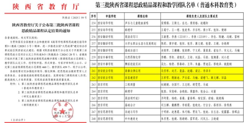 陕西省课程思政精品课程(陕教函[2025]59号)