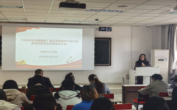 为深入贯彻落实中共陕西省委教育工作委员会办公室《关于认真组织好〈习近平谈治国理政〉第五卷学习宣传工作的通知》精神,以及中共西安欧亚学院委员会宣传部《关于认真组织好〈习近平谈治国理政〉第五卷学习宣传工作的通知》(西欧党宣〔2025〕6号)要求,马克思主义学院于11月12日下午召开《习近平谈治国理政》第五卷专题学习研讨会暨党员大会,旨在推动全体教师用党的创新理论武装头脑,进一步将习近平新时代中国特色社会主义思想落实到每一门思政课程的教学中。